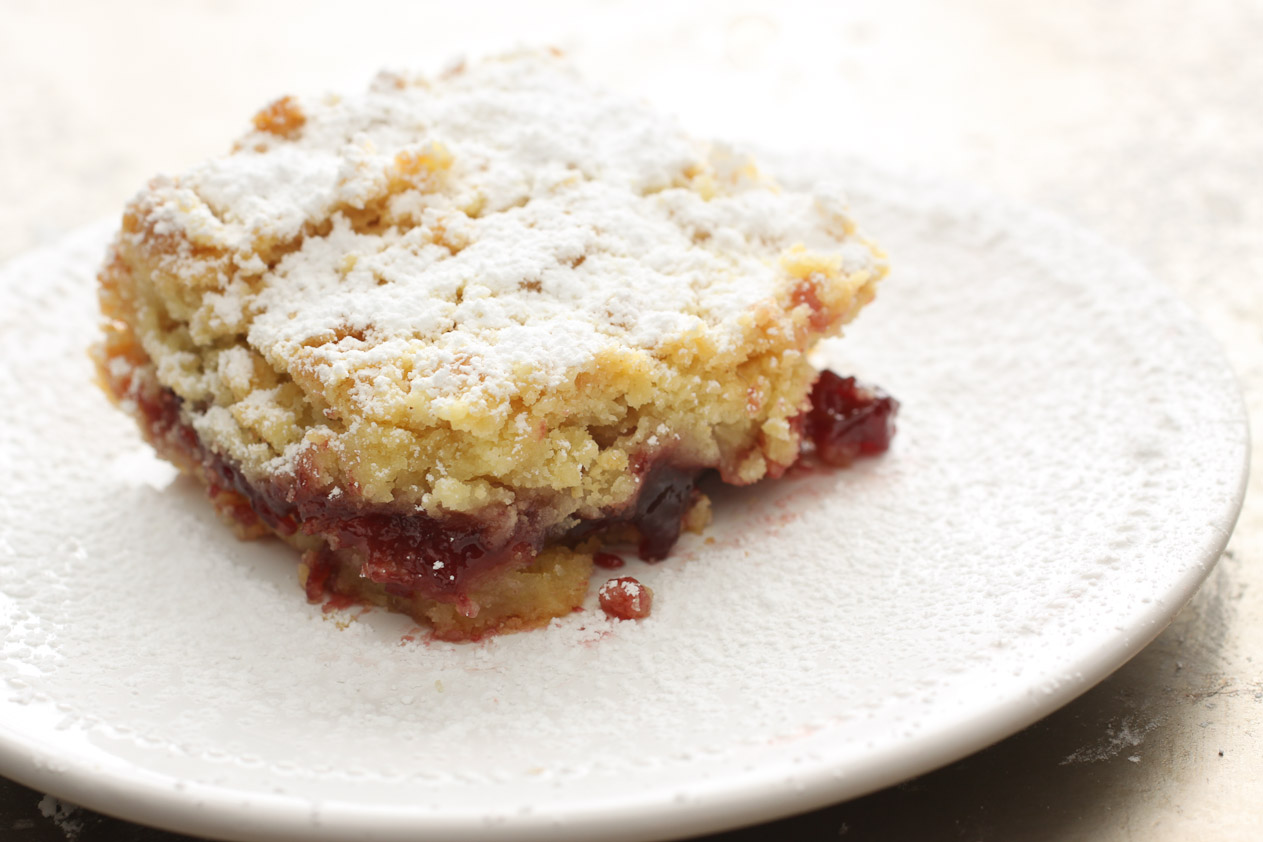 Tart cherry jam sounds like a great filling for these squares. We loved them with the rhubarb jam.